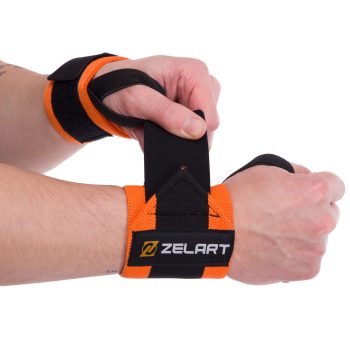 Код Товару 883520Бинти кистьові для жиму STRENGTH WRIST WRAPS Zelart 2шт чорний-помаранчевий