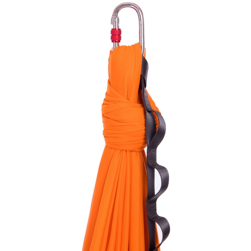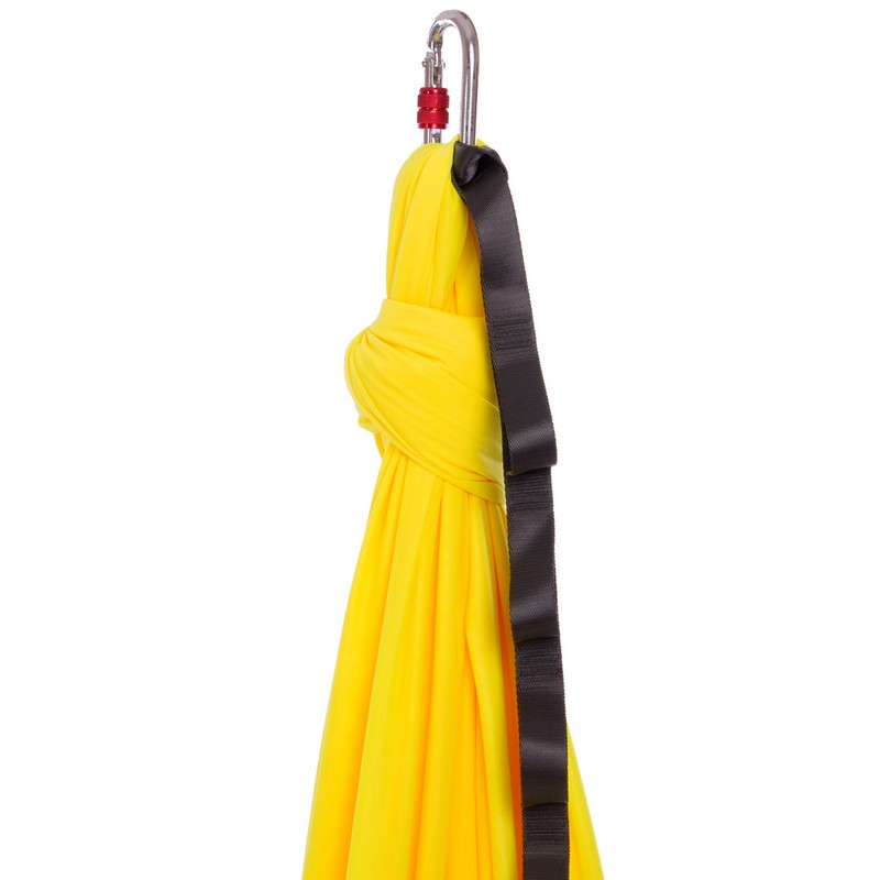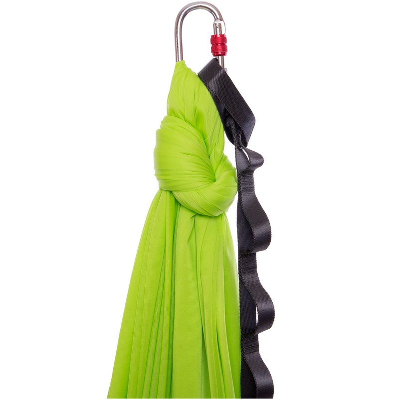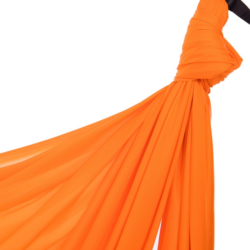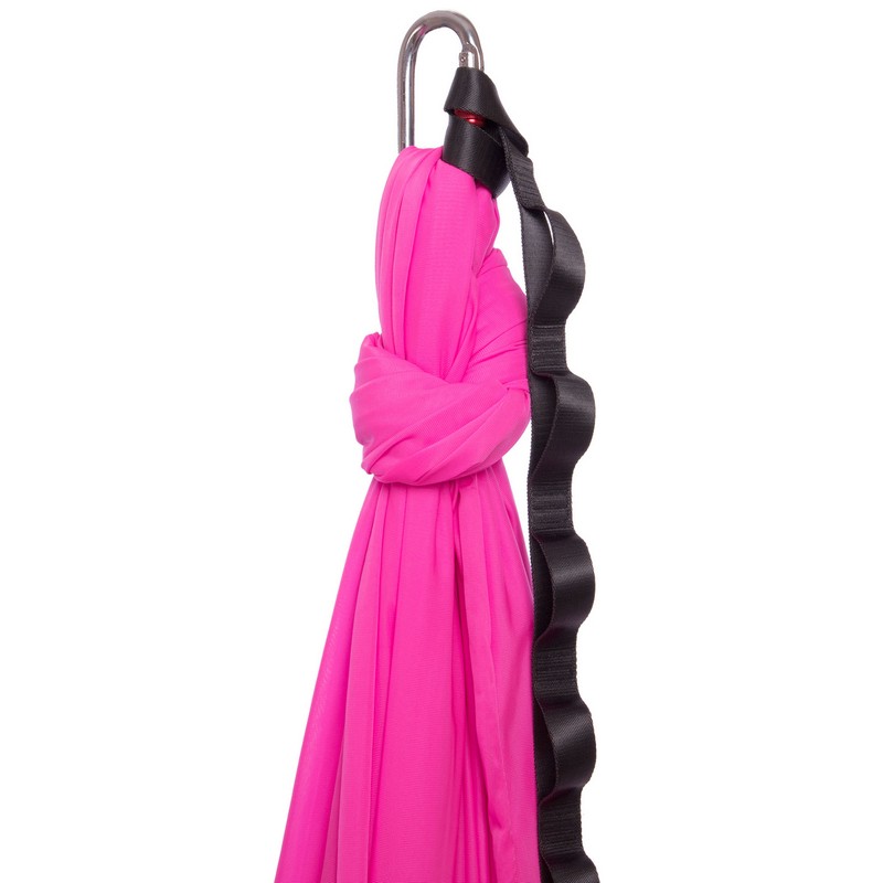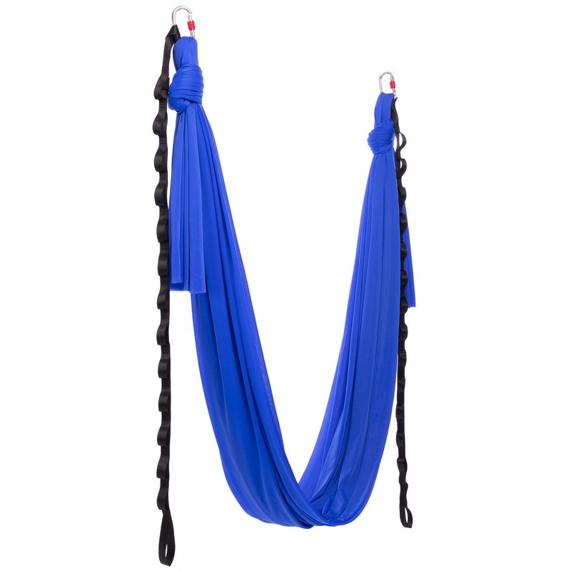 Матеріал гамака – міцний та еластичний поліестер, який має високу повітропроникність. Тканина зручно обволікає тіло, м’яко підтримуючи його під час виконання вправ. Поліестер не розтягується з часом і не втрачає форму навіть при регулярних інтенсивних тренуваннях.