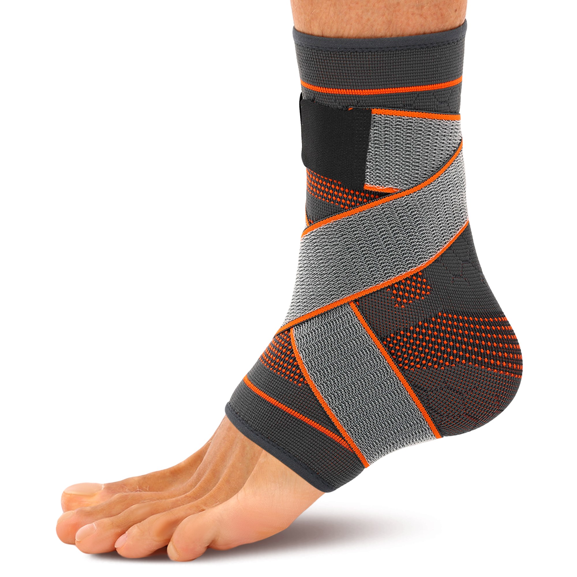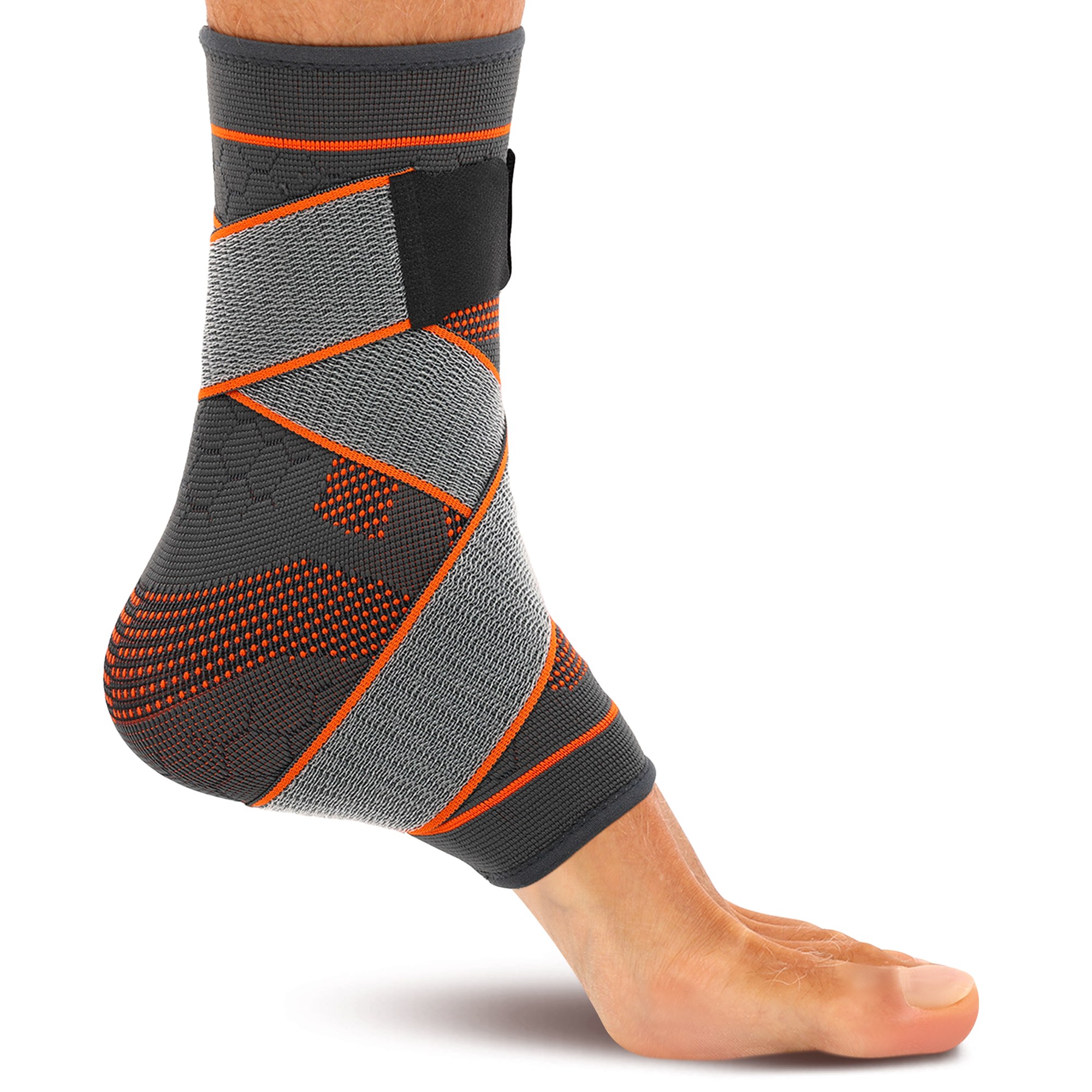 Бандаж на гомілковостоп еластичний з фіксуючим ременем (фіксатор кісточки) SIBOTE розмір S-XL 1шт сірий-помаранчевий