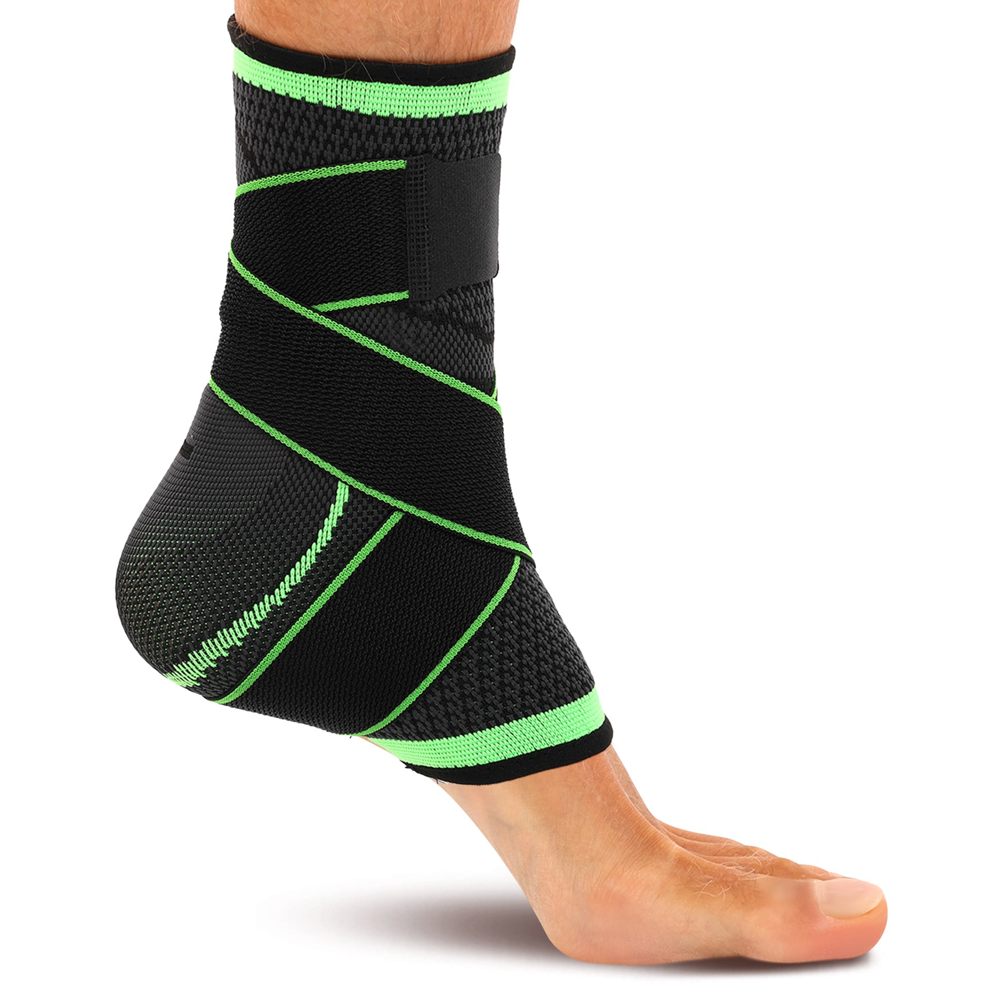 Фіксуючий ремінь — є: еластична стрічка щільно охоплює гомілковостоп по діагоналі, підсилюючи компресію й надійно фіксуючи суглоб. Така конструкція особливо допомагає при відновленні після розтягнень або нестабільності зв’язок — саме там, де потрібна точкова стабілізація.