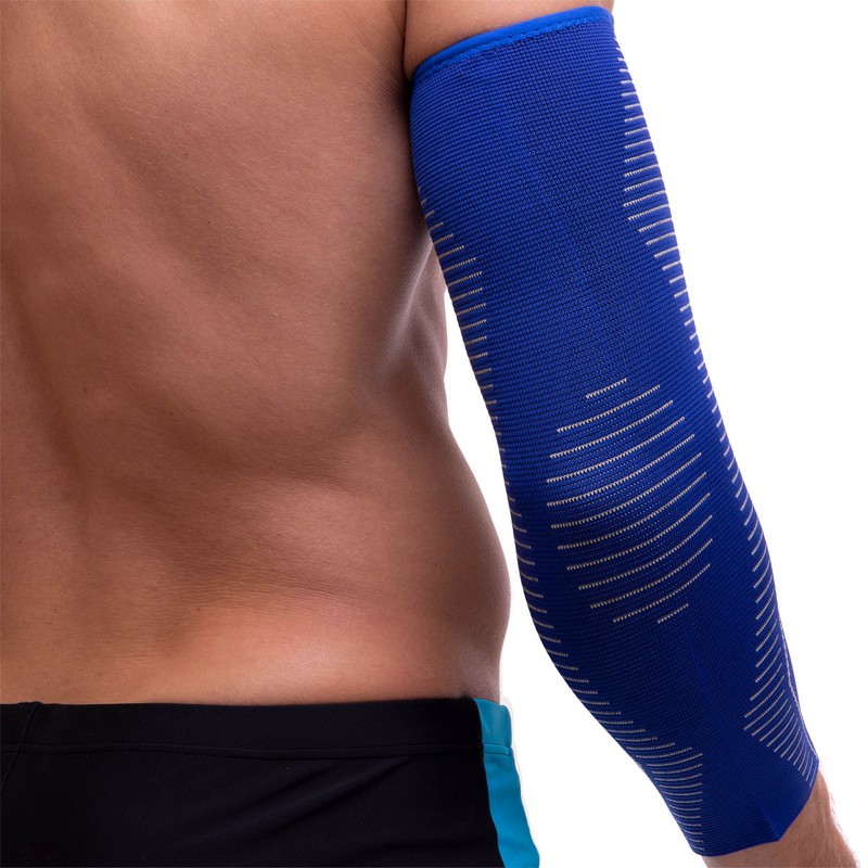 Нарукавник спортивний еластичний компресійний рукав для спорту SIBOTE S-XL 1шт синій