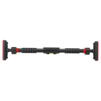 Код Товару 236679Турник у дверний отвір розсувний з рівнем для вимірювання кутового відхилення CIMA 65-100см чорний-червоний