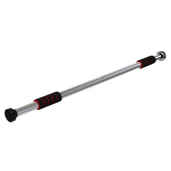 Код Товару 236679Турник у дверний отвір розсувний з рівнем для вимірювання кутового відхилення CIMA 65-100см чорний-червоний